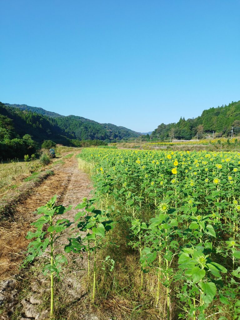 藤群神社近くの2枚の畑は、先日 ”院内児童クラブ”の子供たちとヒマワリ刈り取り作業を実施しました